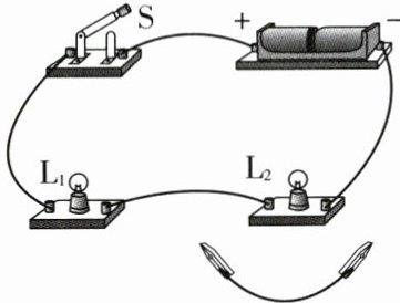 2. 如图所示是由两个不同规格的小灯泡、两节干电池、一个开关组成的电路。闭合开关后,小灯泡$L_1$和$L_2$均发光。用一根导线接在小灯泡$L_2$两端,下列说法正确的是 (