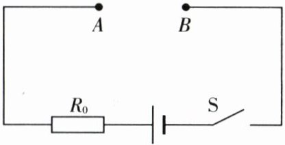 20. 如图所示的电路中,当A、B两点间接入4Ω的电阻时,其电流为2A;当A、B两点间接入9Ω的电阻时,其电流为4/3A。求电源电压和定值电阻R₀的阻值。