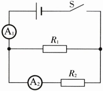 19. 如图所示的电路中$,R_1$的阻值为15Ω,闭合开关S,电流表$A_1$的示数为0.5A,电流表$A_2$的示数为0.3A。求:(1)电源电压$;(2)R_2$的阻值。
