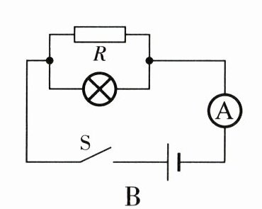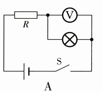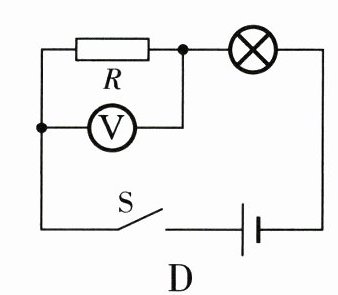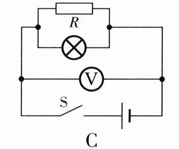 9. 如图所示的四个电路中,电源电压已知,电阻 $ R $ 的阻值已知,根据电压表或电流表的示数,不能间接求出小灯泡电功率的电路图是 (