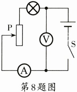 8. 如图所示,电源电压保持不变,闭合开关 $ S $,当滑片 $ P $ 向下移动时,则 (