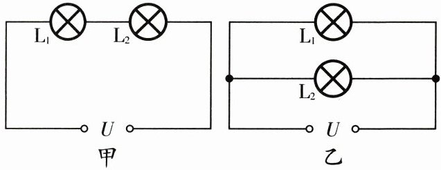 10. 如图所示,将灯 $ L_{1} $、$ L_{2} $ 按甲、乙两种方式接在电压均为 $ U $ 的两个电路中,$ L_{1} $ 在甲、乙两个电路中的电功率分别为 4 W 和 9 W,设两灯丝的电阻不变,则下列说法中正确的是 (
