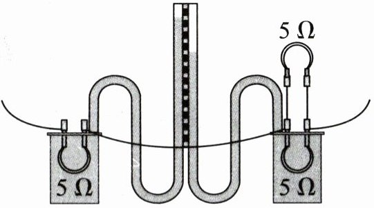 (3) 让实验装置冷却到初始状态,把右瓶并联的两根电阻丝都放入瓶内,接通电源比较两瓶内电阻丝发热的多少。此时该装置是探究电流产生的热量跟