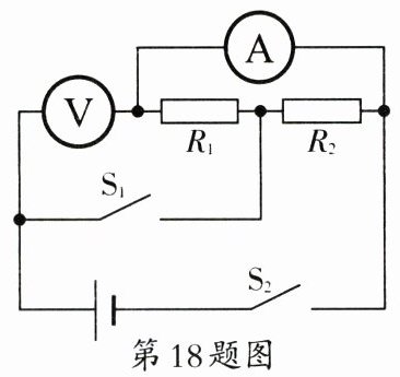 18. 如图所示,电源电压不变,当$ S_1、$$S_2$同时闭合时,电流表示数是 0.3 A,电压表示数是 6 V,则$ R_1 = $
