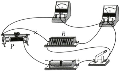 14. 在“探究电阻一定时电流与电压关系”的实验中,小兰同学把定值电阻、电流表、电压表、滑动变阻器、开关和电源连接成了如图所示的电路。闭合开关前,检查电路,小兰发现有接线错误,且只需要改接一根导线就可以,请在接错的导线上画“×”并画线把它改到正确的位置上。