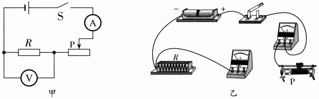 18. 小华在“探究电流跟电阻的关系”的实验中,设计了如图甲所示的电路图。请根据图甲,用笔画线代替导线,将图乙中的电路连接完整。