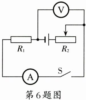 6. 如图所示,电源电压保持不变,闭合开关,在保证电路元件安全的前提下,向右移动滑动变阻器的滑片,则(