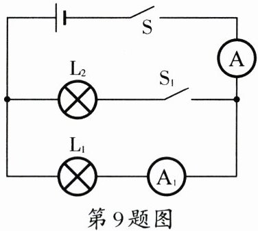 9. 在如图所示电路中,电源电压保持不变。闭合开关 $ S $ 后,开关 $ S_1 $ 由断开到闭合,下列说法正确的是(