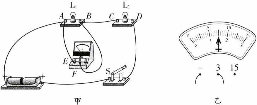 (3) 在某次测量时,电压表的示数如图乙所示,此时灯$L_1$两端的电压为_________V。