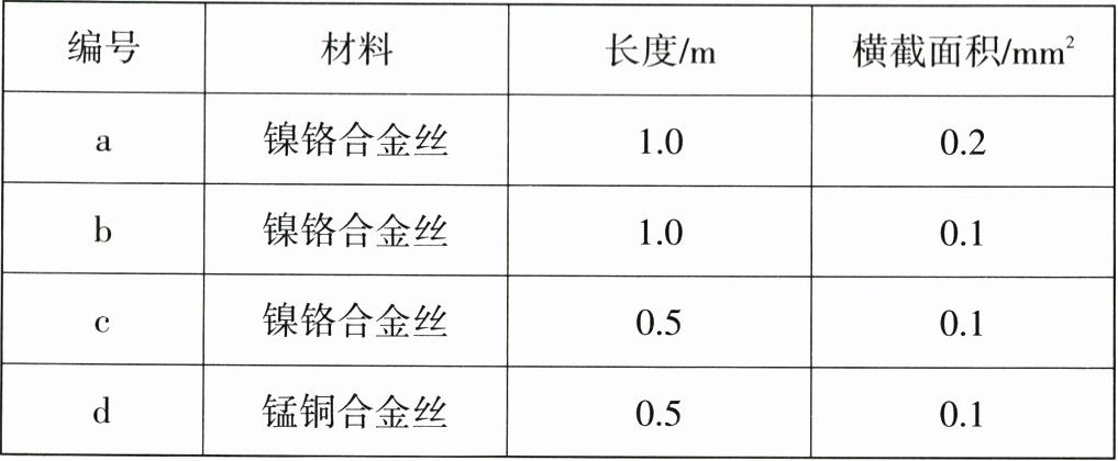 有关。| 编号 | 材料 | 长度/m | 横截面积$/mm^2 $|