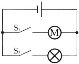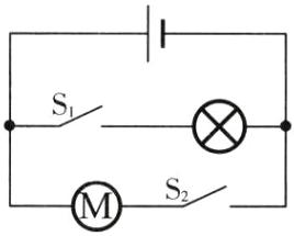 7. 如图所示为某抽油烟机的内部电路设计,抽油烟机上面的照明灯和电动机既可以同时工作又可以独立工作,请把电路连接完整。
