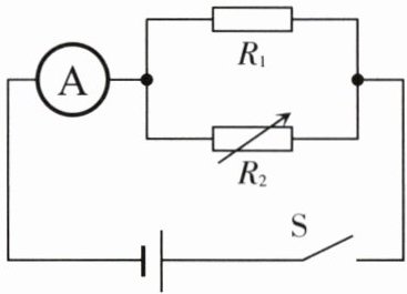 22. 如图所示的电路中,电源电压恒定。闭合开关,调节电阻箱 $ R_2 $ 的阻值分别为 $ 10 \, \Omega $ 和 $ 30 \, \Omega $ 时,对应电流表示数分别为 $ 0.6 \, A $ 和 $ 0.4 \, A $,则电源电压 $ U = $