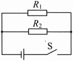 28. 如图所示的电路中,电源电压为6 V。闭合开关S后,电阻$R_1$的电功率为12 W,电阻$R_2$的电流为0.5 A。求: