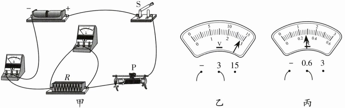的示数保持不变。(4) 在实验过程中,当滑动变阻器的滑片P移到某点时,发现两电表的示数如图乙、丙所示,其中电流表的读数是