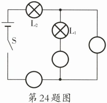 24. 在如图所示电路的〇中填入电表符号,使之成为正确的电路图。