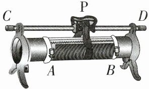 13. 如图所示,如果把 $ A $、$ C $ 两个接线柱与电路连接,当滑片 $ P $ 向左移动时,变阻器接入电路部分的电阻值变