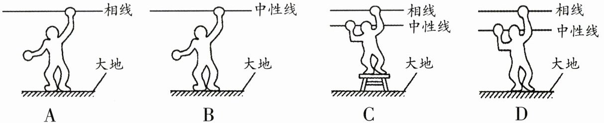 2. 下列四种情况中,人相对安全的是(请同学们千万不要尝试做本实验)(