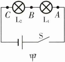 15. 在“探究串联电路特点”时,小明选用两只规格相同的灯泡连接的电路如图甲所示。