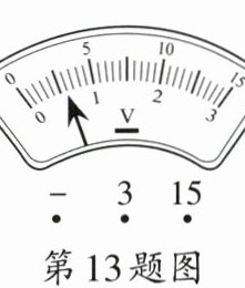 13. 电压表的表盘及指针如图所示,若接“0~3V”量程,电压表的读数为