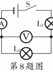 8. 如图所示电路,当开关S闭合后,两表均有示数,过一会儿发现电压表示数突然变小,电流表示数突然变大,据此判断可能是下列故障中的(
