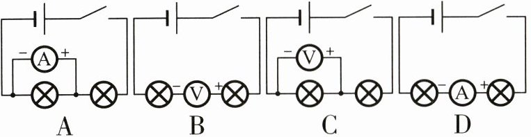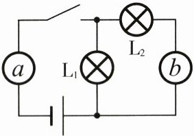 3. 如图所示的电路中,当开关S闭合,两灯均正常发光,a、b两电表的示数也正常,则a、b分别为(