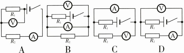 2. 下列电路连接正确且电压表测量$R_2$两端电压的是(
