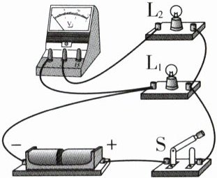 4. 在做“测量并联电路电压”的实验时,本应把电压表并联在小灯泡两端,若不慎将电压表与灯$L_2$串联,如图所示。闭合开关后,下列判断正确的是(