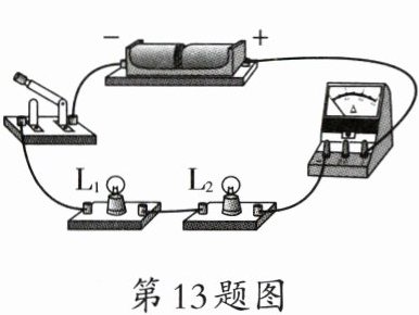 13. 小阳用如图所示的电路做实验时,闭合开关后发现两个灯泡都不亮,则电流表
