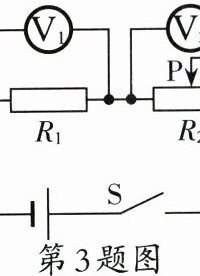 3. 如图所示,$R_{1}$为定值电阻,$R_{2}$为滑动变阻器,电源电压保持不变,闭合开关S,滑动变阻器的滑片P向右移动的过程中,下列说法中正确的是(