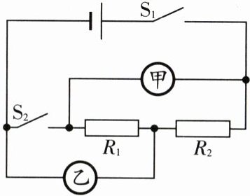 ;若甲、乙两表为电压表,闭合开关$S_{1}$、$S_{2}$,则两表示数之比$U_{甲}:U_{乙}= $5:4