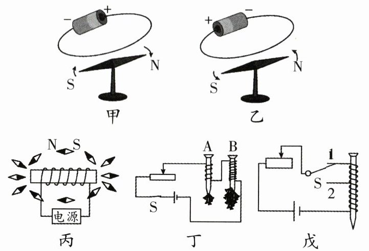 (1)对比图甲和图乙可知:小磁针发生偏转,说明