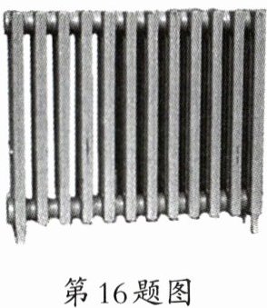 16. 如图所示为北方集中供暖所用暖气片,通常用水作循环物质。相同质量的水和其他物质降低相同的温度时,水放出