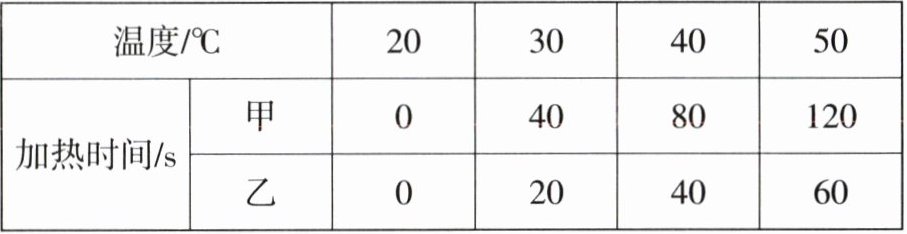 $J/(kg\cdot ^{\circ}C)$。|温度/^{\circ}C|20|30|40|50|