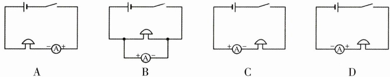 9. 如果想用电流表测电铃工作时的电流,下面电路图设计正确的是 (