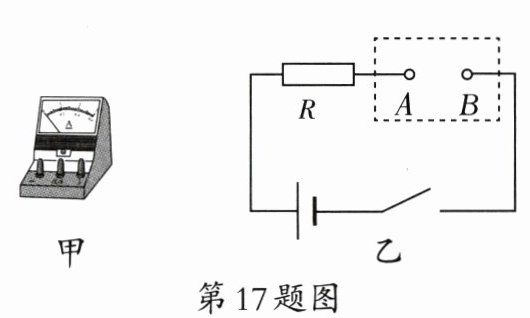 17. 若要将图甲中电流表接入图乙的 A、B 两点间,测电路中的电流,电流表的正接线柱应与