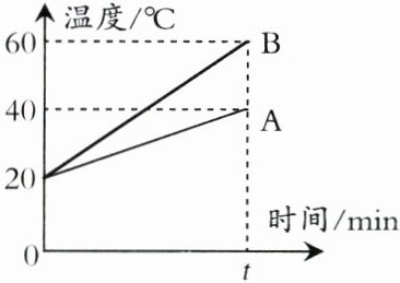 C.都加热时间t,B吸收的热量比A吸收的热量多