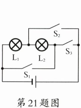 21. 如图所示电路,如果闭合开关$S_2,$断开开关$S_1$和$S_3,$则灯$L_2$