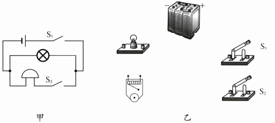 23. 根据甲图所示的电路图,将乙图中的电路装置连接起来。