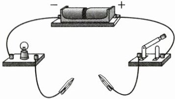 7. 如图所示,在开关和小灯泡之间连着两个金属夹,在金属夹之间分别接入橡皮筋、塑料尺、铅笔芯、硬币,闭合开关后,小灯泡能发光的是(