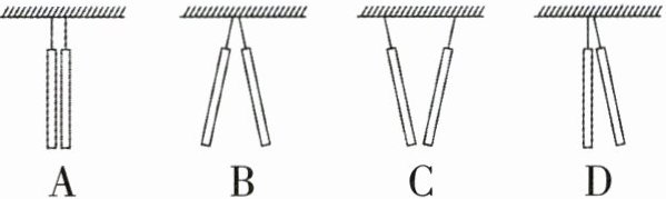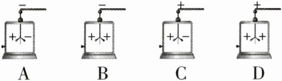 2. 将丝绸摩擦过的玻璃棒接触验电器,下图表示正确的是(