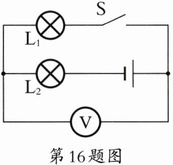 16. 如图电路中, 开关 S 闭合时, 灯 $ L_1 $ 与 $ L_2 $