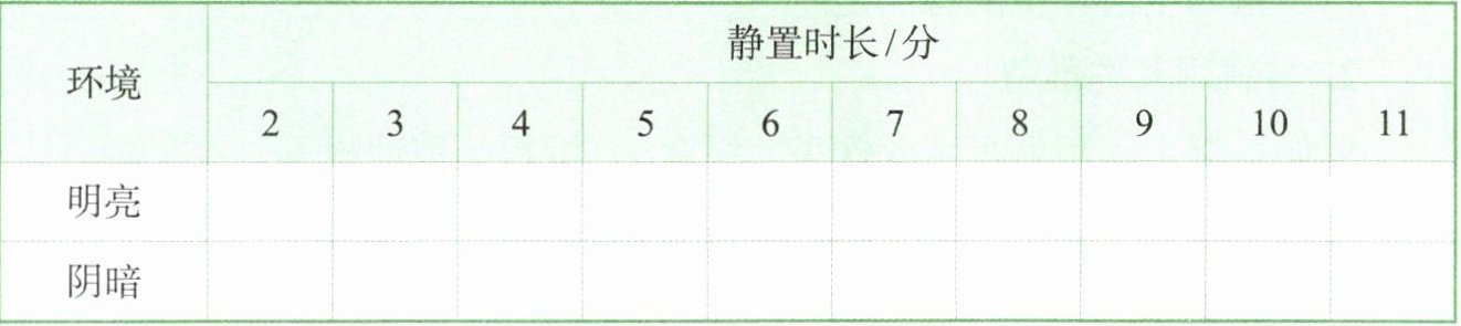 两种环境。(3) 以小组为单位进行实验。在两侧中央各放入5只鼠妇,静置2分钟。然后每分钟统计一次两边鼠妇的数目,共统计10次。将统计的结果填在下表中。
