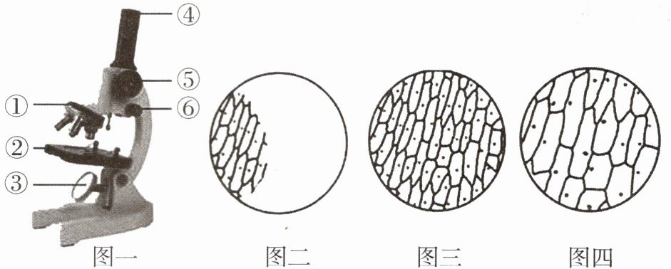 C.从图三到图四,可以通过转动图一中的①更换物镜实现