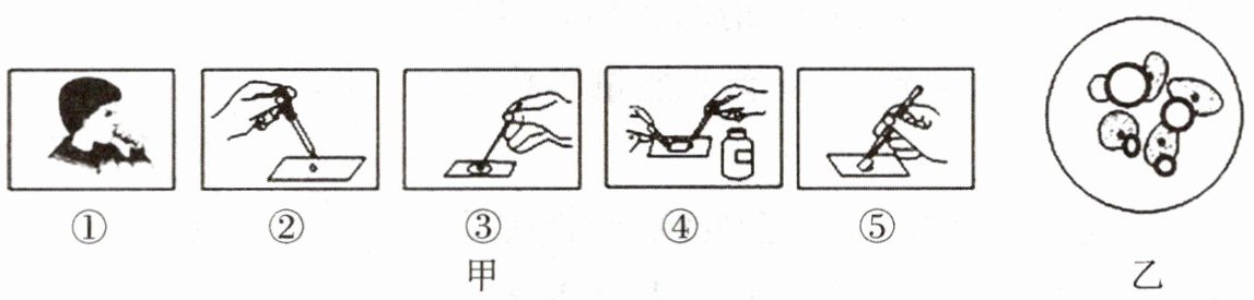 2. 小方制作人的口腔上皮细胞临时装片的过程如下图甲所示,图乙为观察到的视野,下列叙述正确的是(