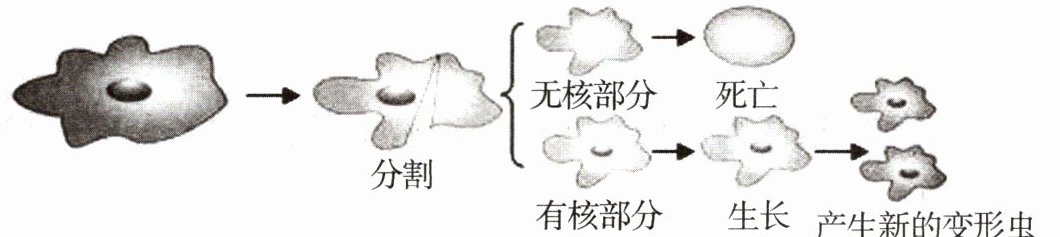 9. 科学家为了探究细胞核是否能控制细胞的生命活动,以变形虫为实验材料,设计了如图两个实验活动,请回答下列问题。