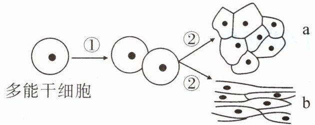 组织构成。(2)“3D 心脏”的制备必须以自身组织为原料,过程如右上图所示。多能干细胞在[①]细胞分裂过程中,细胞核中的