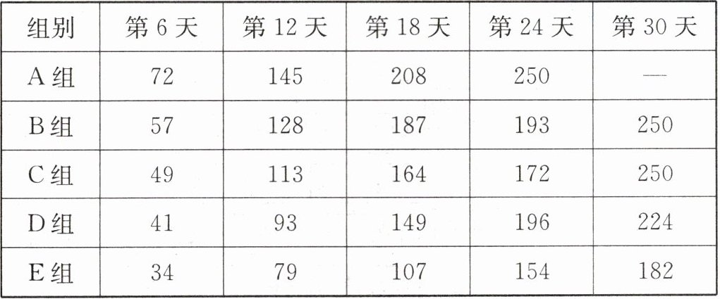 12. 许多苔藓植物的“叶”只有一层细胞,二氧化硫等有毒气体可以从背腹两面侵入细胞,浓度很低的有毒气体即可威胁这些植物的生存。因此,一些苔藓植物可以作为监测空气污染程度的指示植物。大气中的二氧化硫浓度超过一定值时,葫芦藓就不能生存。某燃煤发电厂的烟囱中有二氧化硫排放,为研究二氧化硫浓度对植物生长的影响,某研究小组在离烟囱每隔一定距离的地方放置种有葫芦藓的花盆,每处种有葫芦藓250株,由近至远分别编号为A组、B组、C组、D组、E组。一段时间后,葫芦藓植株的死亡数量统计如下表(单位:株),请据此回答下列问题。