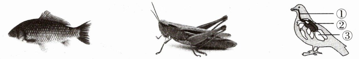 9. 动物的生活环境和运动方式是多种多样的,它们的形态结构也各具特点。请以鲫鱼、蝗虫、家鸽为例,分析并回答下列问题。