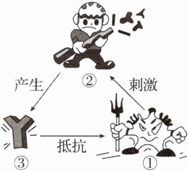 5. 如图所示的漫画表示人体受到某种病毒感染时发生的免疫反应,图中代表抗原和抗体的序号分别是(