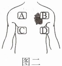(2)根据文中操作方法,使用AED时,两个电极片应分别贴在图二所示的